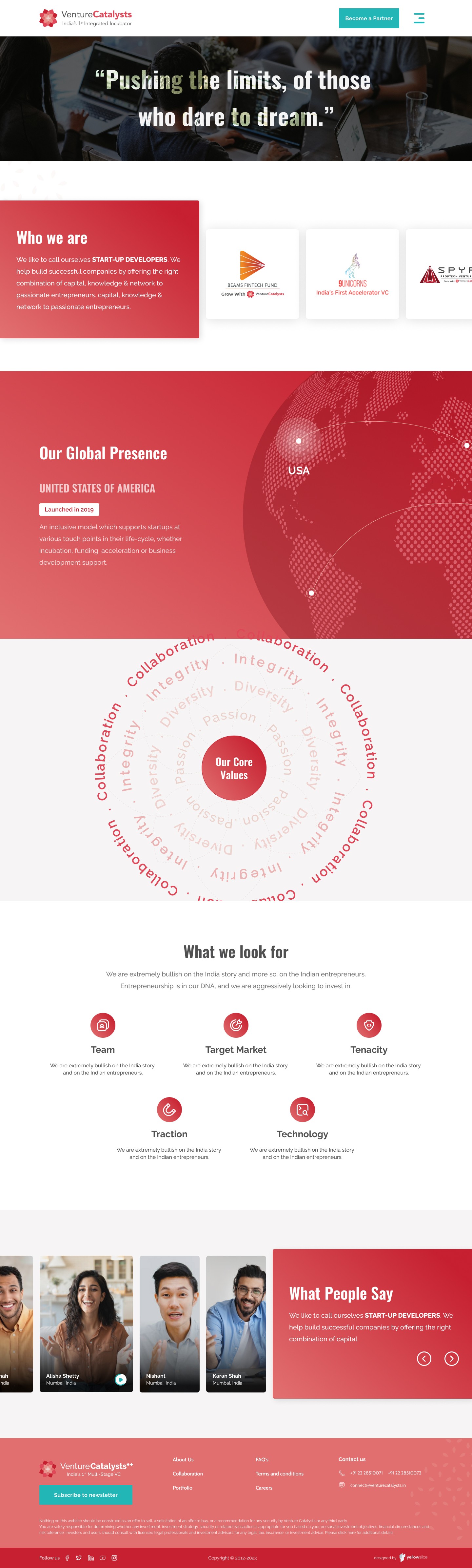 Established in the year 2016, Venture Catalysts++ is India's first multi-stage VC dedicated to creating the world's most prominent startup ecosystem. Our global presence is established across a total of 50+ cities in countries such as UAE, USA, UK, Singapore, Luxembourg, Thailand, Canada, Eastern Africa, Zimbabwe, Hong Kong, and Southern Africa.